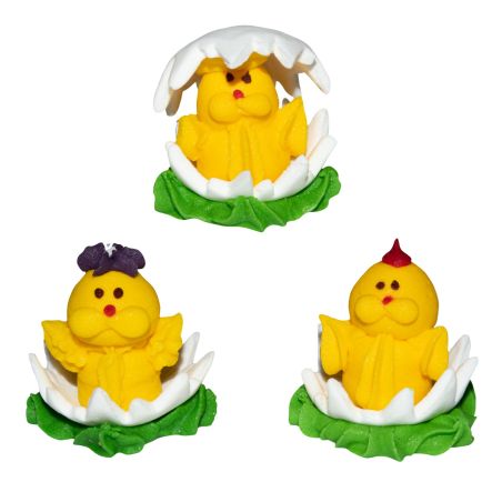 Easter sugar decorations for cake - Ditarte - Chickens in Shells, 3 pcs.