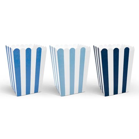 Boxes for popcorn - PartyDeco - blue stripes, 6 pcs.