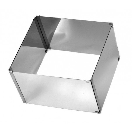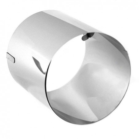 High-quality, adjustable, round baking mold for cakes and sponge cakes. The band is extremely helpful when preparing baked goods with additives. The outer side of the rim has a printed adjustment range. It is made of stainless steel, which makes it stable and easy to clean. The mold comes with 2 clips.
