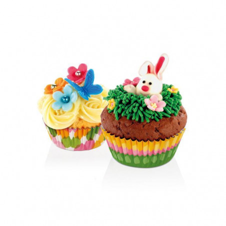 Thanks to the cases, baking muffins or traditional cupcakes becomes much easier. Since we do not pour the dough directly into the mold, it does not need to be greased with butter, and after baking, we can easily take the finished cupcakes out of it without worrying about damaging the delicate dough or the Teflon coating of the mold. The finished baking is served on the table in paper molds, allowing guests to admire the colorful motifs decorating the sides of our muffins. Thanks to the decorations included in the set, making muffins for a children's party becomes very easy. Cookies left in paper trays do not dry out so easily, so we will be able to enjoy their freshness for longer.