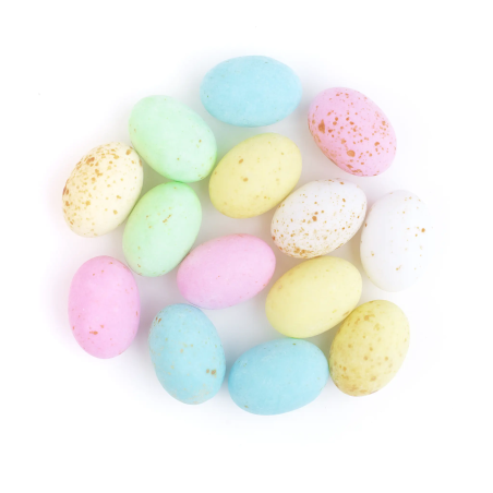 Milk chocolate eggs in a sugar shell, filled with chocolate-hazelnut cream. Such decorations will make your desserts the center of attention and will be remembered for longer as a unique product. Give your sweet baked goods shine and a unique design. Perfect for Easter. The package contains approximately 15 eggs.