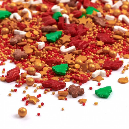 Set of 24 gold Christmas decorations made of food foil. Perfect for decorating confectionery. They will add elegance to any baked product, dessert, chocolate. Perfect substitute for edible gold, made from food gelatin and gold food coloring. It is best to apply the decorations with tweezers to a slightly moistened or food glued surface. A product of the renowned Italian brand Modecor.
