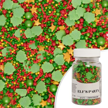 Immerse your baked goods in the magic of the holidays with Festive Crystals sprinkles! Soft, fine and with no hard parts, it's perfect for decorating gingerbread cookies, cupcakes and holiday cakes. Red and white dragees filled with delicious chocolate, golden pearls with crisscross and charming green Christmas trees will bring the true glow of Christmas to your sweets. Any dessert decorated with these sprinkles will gain a unique, festive character that will delight your guests and emphasize the uniqueness of your Christmas table. If you are looking for a decoration that not only looks beautiful, but also tastes wonderful, this is the perfect choice for this Christmas! Add a touch of magical joy to your baked goods!