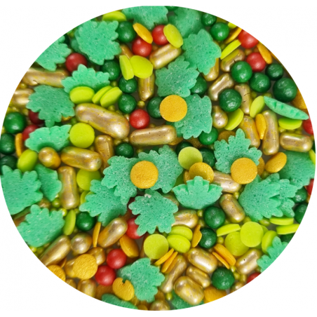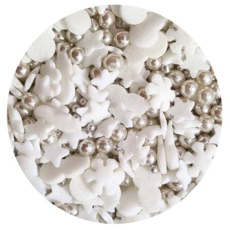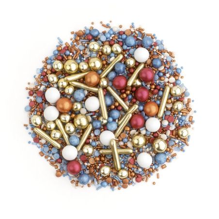 Its composition is not only beautiful in appearance, but also in various textures - from small, shimmering sugar balls to larger heart-shaped confetti, to golden pearls with a crunch in the middle. It is the perfect solution for anyone who wants to add a bit of magic to their baked goods without unnecessary effort.