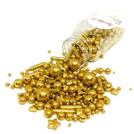 The container features a rotating lid that allows for easy dispensing of each sprinkle type separately, without the risk of spilling or mixing the contents.