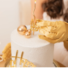 The crown-shaped cake topper with crystals is an elegant and unique decoration that adds a touch of sparkle to any cake.
