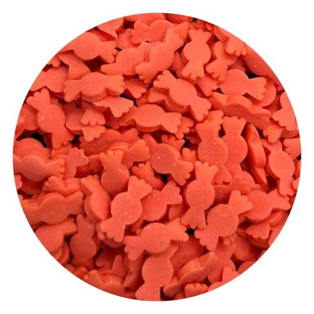 INGREDIENTS: dextrose, maltodextrin, starch (corn), glucose syrup, anti-caking agent: E470b, flavouring, thickener: E414, concentrate (apple, carrot), colour: E160c, E129, E102, E133, E110, glazing agent: E904, E903. Colours E129, E102, E110 may have an adverse effect on activity and attention in children. May contain traces of soy.