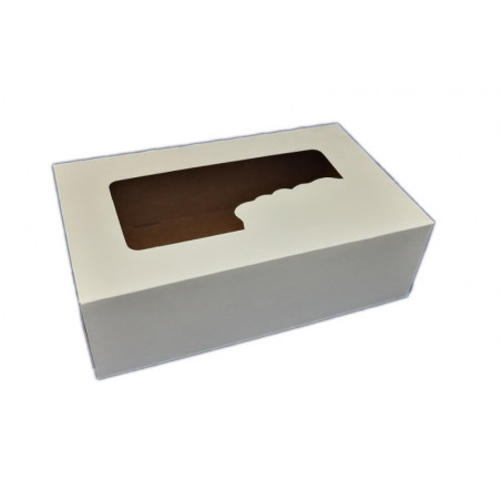 Decorative cardboard box with a transparent window. Perfect packaging that protects and at the same time displays all cakes and other baked goods. The advantage of the packaging is undoubtedly its height, as it is as much as 19 cm, which will allow you to pack even larger cakes without the risk of damaging the top decoration. The possibility of opening the side makes it easier to put in and take out the cake, for example with a liner.