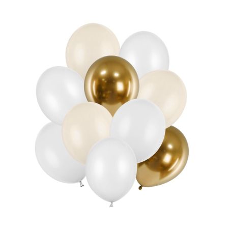 W komplecie znajduje się 6 balonów o średnicy 12 cali: 2 białe, 2 zielone oraz 2 czarne. Balony można napełnić powietrzem lub helem, w zależności od potrzeb dekoracyjnych.