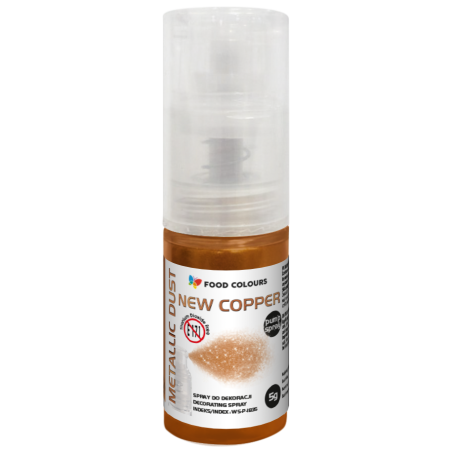 Profesjonalny barwnik spożywczy w sprayu o metalicznym wykończeniu, idealny do szybkiej i efektownej dekoracji wypieków oraz deserów. Umożliwia równomierne pokrycie większych powierzchni, nadając im elegancki połysk.