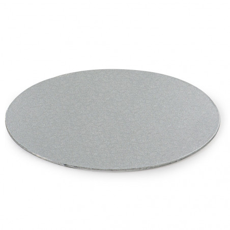 Biało-czarny, okrągły, dwustronny podkład pod tort z gładkimi bokami. Pełni funkcję dekoracyjną. Idealnie sprawdzi się również jako przekładka pomiędzy piętrami tortu. Podkłady są przeznaczone do kontaktu z żywnością oraz są odporne na tłuszcz i wodę. Tolerancja średnicy (zależnie od partii) wynosi +- 1 cm.