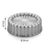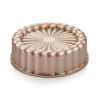 Solidny korpus wykonany ze stopu metali oraz wysokiej jakości powłoka antyadhezyjna w eleganckim, metalicznym kolorze zapewniają równomierne pieczenie bez ryzyka przypalania. Po upieczeniu gorące ciasto można łatwo wysunąć z formy, co znacząco ułatwia serwowanie. Zalecane mycie pod bieżącą wodą z dodatkiem płynu do mycia naczyń; możliwość mycia w zmywarce.