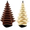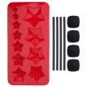 Forma wykonana jest z czerwonego silikonu odpornego na temperaturę do 230°C, co umożliwia zarówno pieczenie, jak i używanie jej w zamrażarce czy mikrofalówce, a także łatwe mycie w zmywarce. Elastyczny materiał ułatwia wyjmowanie gotowych pralinek, a wyprofilowane gwiazdki pozwalają na tworzenie czekoladowych choinek, nakładając je na patyczki od największej do najmniejszej. W komplecie znajdują się 4 patyczki o długości 15 cm, które pełnią funkcję stelaża, oraz 4 czarne silikonowe podstawki zapewniające stabilność gotowych słodkości.