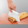 Wbudowane sitko pozwala szybko odcedzić konserwy, a specjalne otwory i wycięcia umożliwiają oddzielanie liści ziół od łodyg. Zintegrowana linijka pomiarowa ułatwia precyzyjne odmierzanie, a szeroka powierzchnia sprawdza się również przy zgarnianiu, nabieraniu i przenoszeniu pokrojonych warzyw oraz innych produktów.