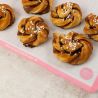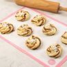 Antypoślizgowa, nieprzywierająca powierzchnia podkładki umożliwia równomierne rozprowadzanie ciasta, czekolady i polew, a po zastygnięciu dekoracje łatwo odchodzą od podłoża. Dodatkowo można umieścić pod nią szablony, aby szybko i precyzyjnie tworzyć napisy oraz wzory.