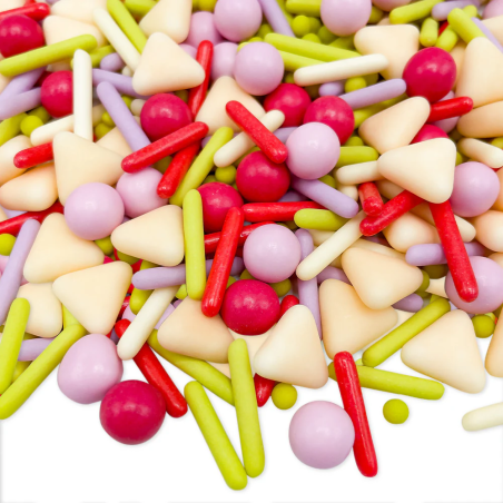 Kolorowa posypka stanowiąca wesołą dekorację tortów, deserów i wszelkiego rodzaju ciast. Takie ozdoby sprawią, że Twoje desery będą w centrum zainteresowania i zostaną zapamiętane na dłużej, jako wyrób unikalny. Nadaj swoim słodkim wypiekom blask i niepowtarzalny design.