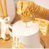 Topper na tort w kształcie korony z kryształkami to elegancka i wyjątkowa dekoracja, która doda blasku każdemu tortowi.