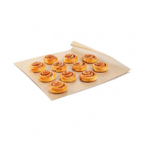 Profesjonalny papier do pieczenia w kolorze brązowym, obustronnie silikonowany. Idealnie sprawdza się przy pieczeniu ciast, frytek, pizzy. Pieczone na nim potrawy nie przywierają do blachy, a po upieczeniu z łatwością odchodzą od papieru. Produkt bezwonny.