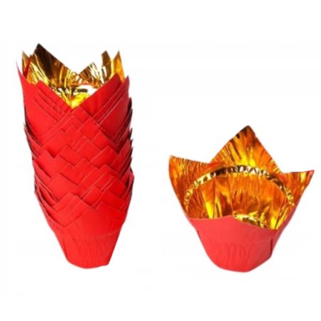 Zestaw 24 papilotek-tulipanów w 2 rodzajach z motywem świątecznym. Dzięki papilotkom pieczenie muffinów lub tradycyjnych babeczek staje się dużo łatwiejsze. Ponieważ nie wylewamy ciasta bezpośrednio do formy nie trzeba jej smarować masłem, a po upieczeniu bez trudu wyjmiemy z niej gotowe babeczki nie martwiąc się, że uszkodzimy delikatne ciasto lub teflonową powłokę formy. Gotowy wypiek podajemy na stół w papierowych foremkach, pozwalając gościom zachwycać się kolorowymi motywami zdobiącymi boki naszych muffinek. Ciastka pozostawione w papierowych foremkach nie wysychają tak łatwo, dzięki czemu będziemy mogli dłużej cieszyć się ich świeżością. Idealne na Boże Narodzenie. Produkt renomowanej marki PME.