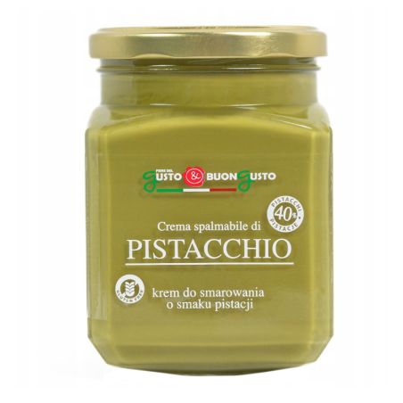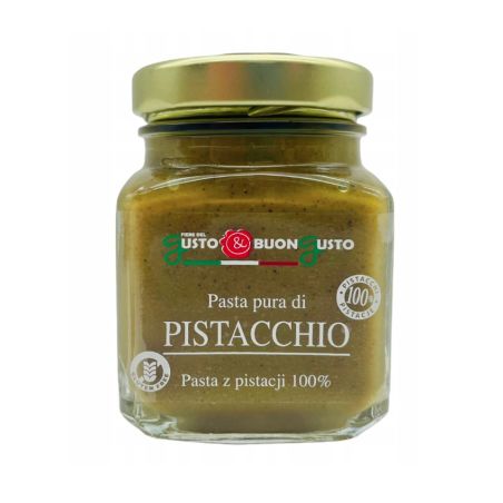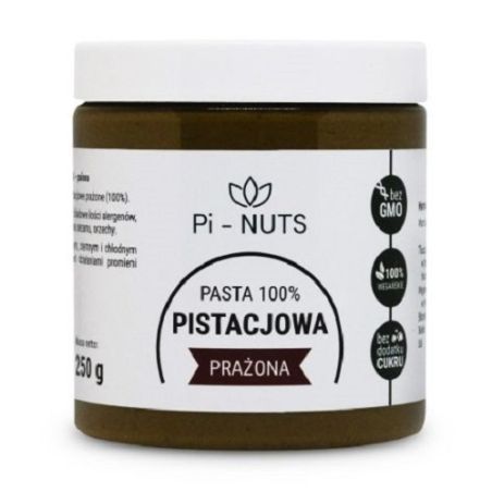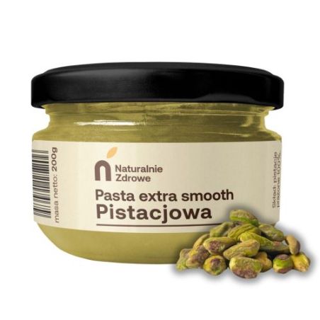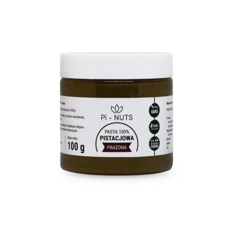 Pasta z pistacji (pasta pistacjowa) to produkt o ciekawym smaku oraz wyjątkowej maślanej teksturze. Masło pistacjowe nadaje się do użycia jako składnik w lodach, babeczkach oraz różnego rodzaju deserach i potrawach. Pełna zróżnicowanych minerałów pasta z pistacji, perfekcyjnie pasuje do codziennej diety wegetarian oraz wegan z powodu zawartości dużej ilości białka i błonnika. Wspomaga prawidłowe funkcjonowanie całego organizmu. Produkt w 100% z pistacji. Powstaje poprzez ścieranie oraz mielenie orzechów bez łupiny. Nie zawiera żadnych dodatków, konserwantów ani substancji dodatkowych.