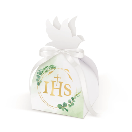 Pudełka na upominek komunijne IHS - biało-złote 6 szt.