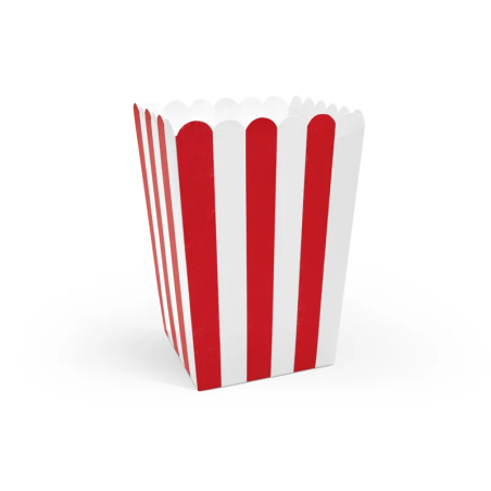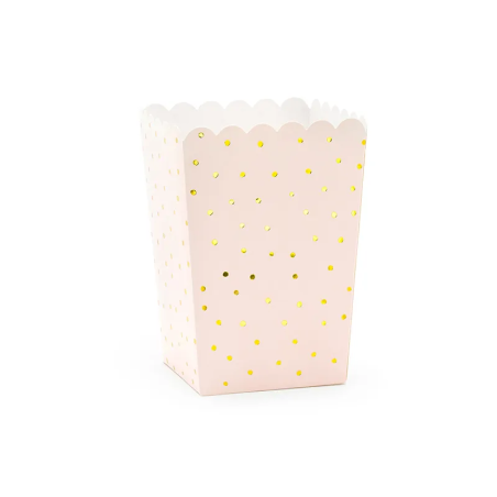 Pudełka na popcorn - PartyDeco - jasnoniebieskie, złote paski, 6 szt.