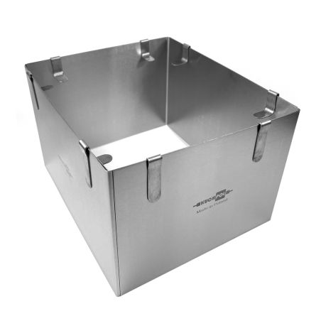 Do zastosowania rantu podczas pieczenia potrzebujesz dodatkowo papieru do pieczenia i trwałego podkładu pod ciasto. W tym celu możesz wykorzystać np. wielorazową matę z teflonu. Dzięki spinkom dołączonym do formy możesz regulować średnicę ciasta w dowolny sposób. W przypadku opaski o wysokości 12 cm zakres regulacji wynosi od 17 do 30 cm.