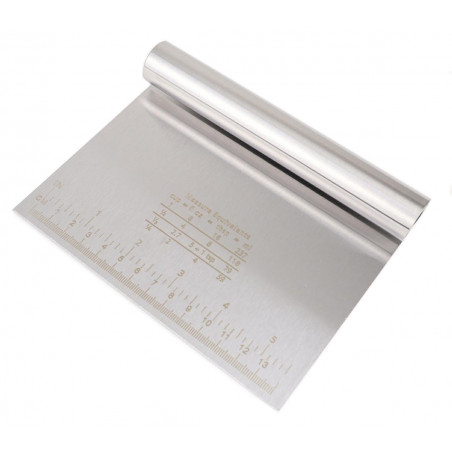 Rozdrabniacz kuchenny do ciasta o szerokości 17,5 cm. Narzędzie przydatne przy pieczeniu i dekoracji ciast, ciasteczek, ale też bułek czy chleba. Ostra krawędź skutecznie kroi. Łatwo podzielisz nią ciasto na porcje lub wykroisz kształt. Skala w centymetrach umożliwia przygotowanie kawałków ciasta o odpowiedniej długości lub szerokości. Precyzyjnie odmierzysz więc również masę cukierniczą na dekoracje. Dzięki temu np. dokładnie pokryjesz dno blaszki do pieczenia lub ozdobisz tort. Wykonanie ze stali nierdzewnej oznacza trwałość i odporność na działanie wilgoci czy zniekształcenia. Na długo zostanie w twojej domowej kuchni.
