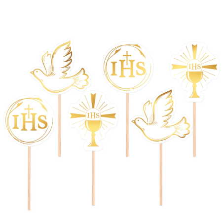 Toppery do muffinek Gwiazdki - PartyDeco - złote, 11,5 cm, 6 szt.