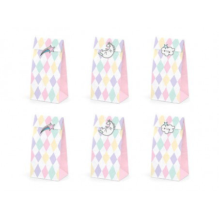 Sztywne dno ułatwia ustawienie torebki w pozycji pionowej, co pozwala na wygodne napełnianie i estetyczne prezentowanie zawartości. Dzięki temu świetnie sprawdzą się jako opakowanie na słodycze rozdawane gościom lub jako część dekoracji stołu.