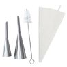 Zestaw 2 tylek cukierniczych do nadziewania pączków z dedykowaną szczoteczką do czyszczenia i silikonowym rękawem cukierniczym. Z ich pomocą możesz podać gościom domowe pączki nadziewane, czym tylko chcesz. Świetnie sprawdzą się również podczas robienia babeczek z nadzieniem czekoladowym lub konfiturą. Wykonane ze stali nierdzewnej. Prosta konstrukcja ułatwi ci pielęgnację.