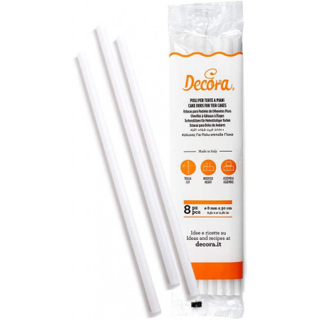 Plastikowa rurka pozwalająca ustabilizować i stworzyć spektakularne, kilkupiętrowe torty i wielopoziomowe ciasta. Wspornik można dowolnie przycinać do pożądanego rozmiaru za pomocą nożyczek lub noża z ząbkami. Świetnie nadaje się również do przytwierdzania kształtów i postaci z masy cukrowej lub większych rzeźbionych elementów.