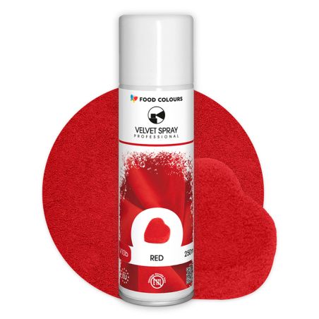 Zamsz w sprayu Velvet Spray Food Colours w kolorze bordowym to wysokiej jakości barwnik spożywczy w aerozolu, który umożliwia uzyskanie eleganckiego, aksamitnego wykończenia na powierzchni deserów. Przeznaczony do profesjonalnych dekoracji tortów, monoporcji, musów, lodów, pralin, czekoladek czy wypieków pokrytych kremem.