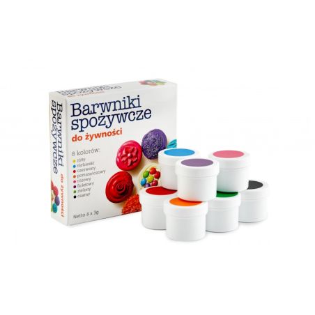Barwniki żelowe, dodawane nawet w niewielkich ilościach, pozwolą uzyskać głębokie, nasycone barwy. Szeroka gama dostępnych kolorów po połączeniu ze sobą pozwoli stworzyć praktycznie każdy, dostosowany do indywidualnych potrzeb kolor i odcień. Barwniki mają żelową konsystencję, dlatego dodane do mas lukrowych nie rozrzedzają ich.