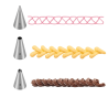 Zestaw Tescoma umożliwia szybką i efektowną dekorację ciast, tortów, muffinek oraz innych wypieków za pomocą kremów. W jego skład wchodzi sześć precyzyjnych tylek ze stali nierdzewnej oraz dedykowany, uniwersalny adapter, które pozwalają tworzyć wyjątkowo szczegółowe zdobienia z dopracowanymi detalami.